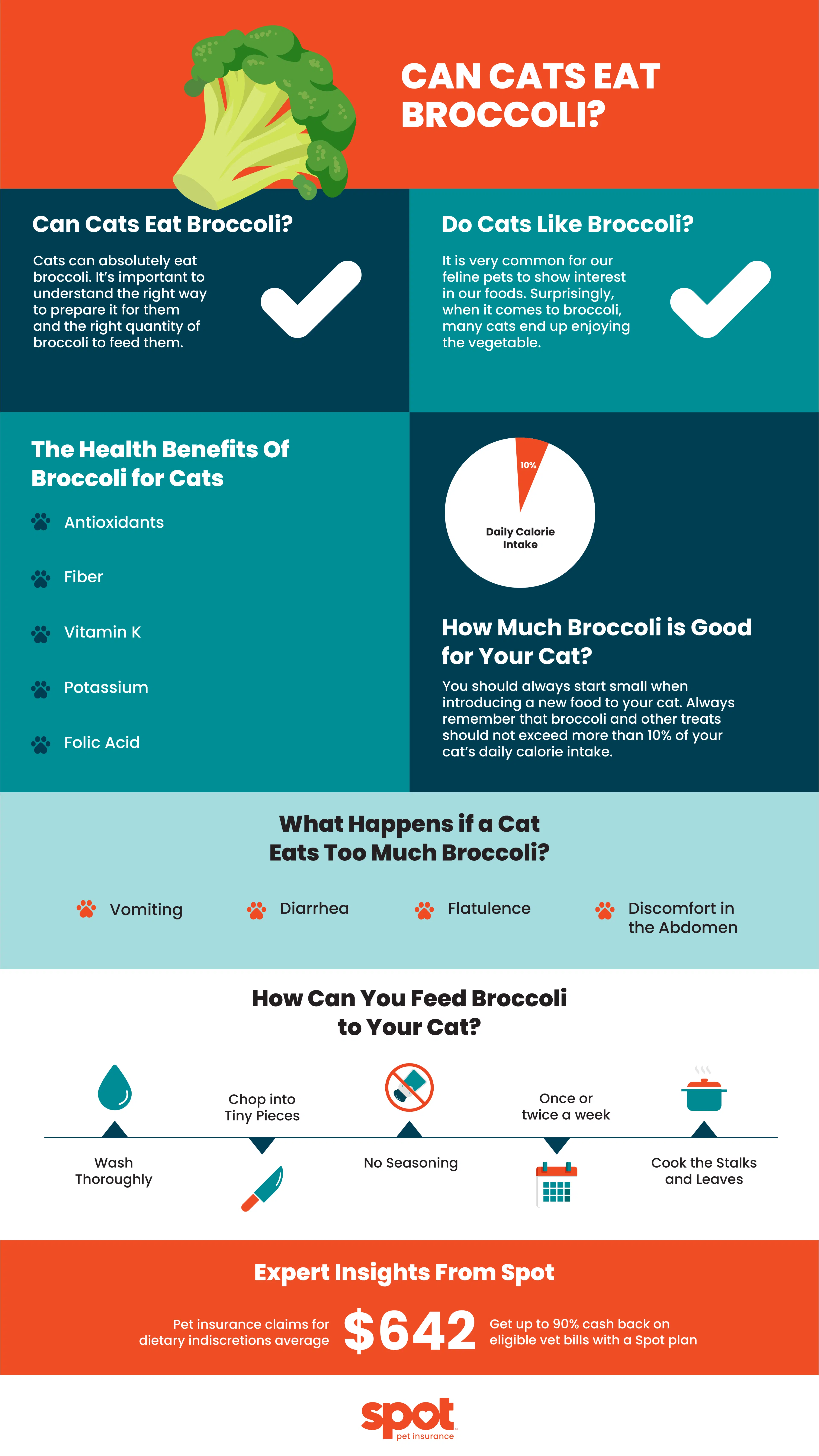 Eating broccoli may even help your cat lose weight because it can replace high-fat, high-carb treats.