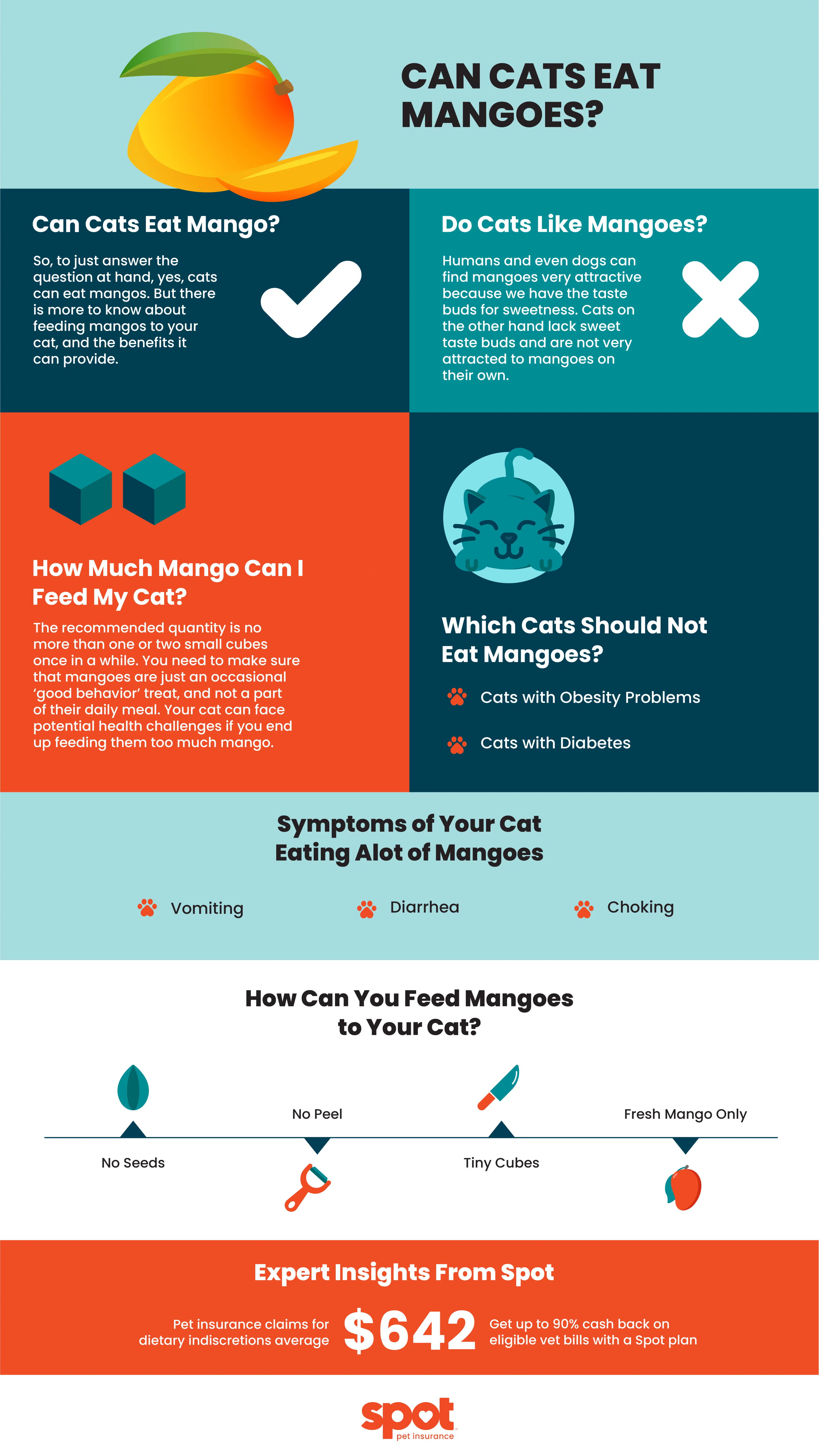 Spot’s Accident-Only and Accident and Illness plan options can help with the eligible costs of treatment if your cat is experiencing unexpected stomach issues after eating too much mango. Spot cat insurance plans can help provide up to 90% cash back on eligible vet bills, so you can choose the best treatment for your pet with less worry about the cost. Get a free quote today!