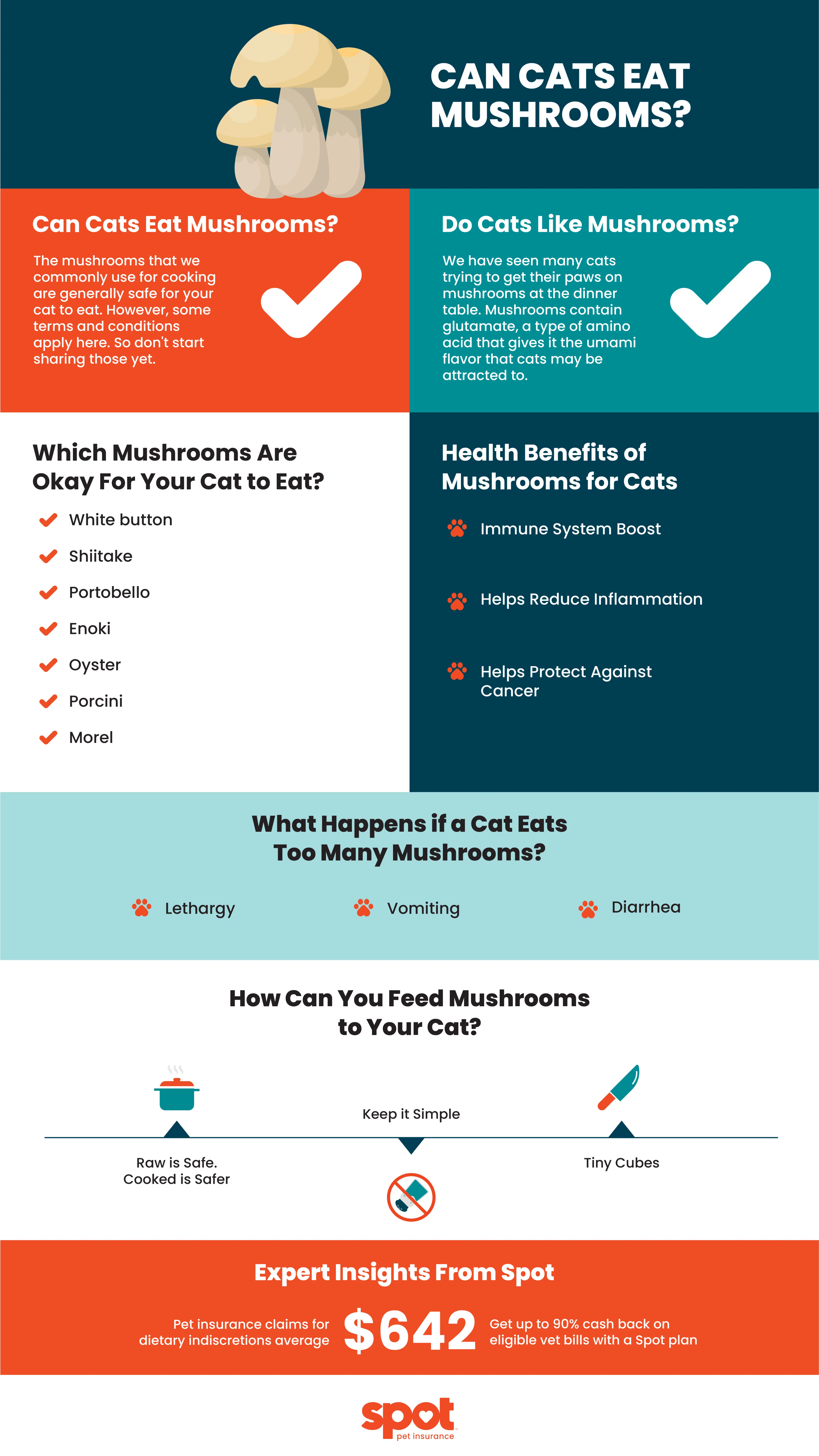 There are some health benefits cats can get from eating safe, non-toxic mushrooms.3 The big ones are: