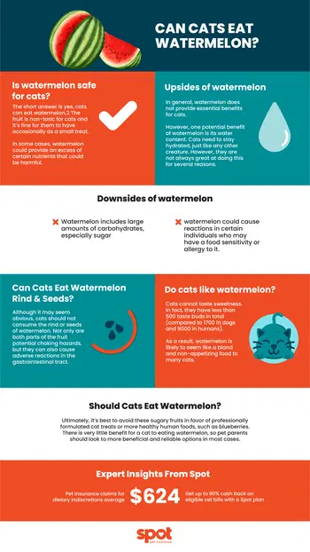 The short answer is yes, cats can eat watermelon.2 The fruit is non-toxic for cats and it’s fine for them to have occasionally as a small treat.When formulated by a qualified professional, cat food provides everything your cat needs. Therefore, watermelon can only be seen as a treat.
