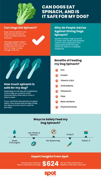 You also need to know the benefits and risks of feeding your dog spinach before you make a decision.