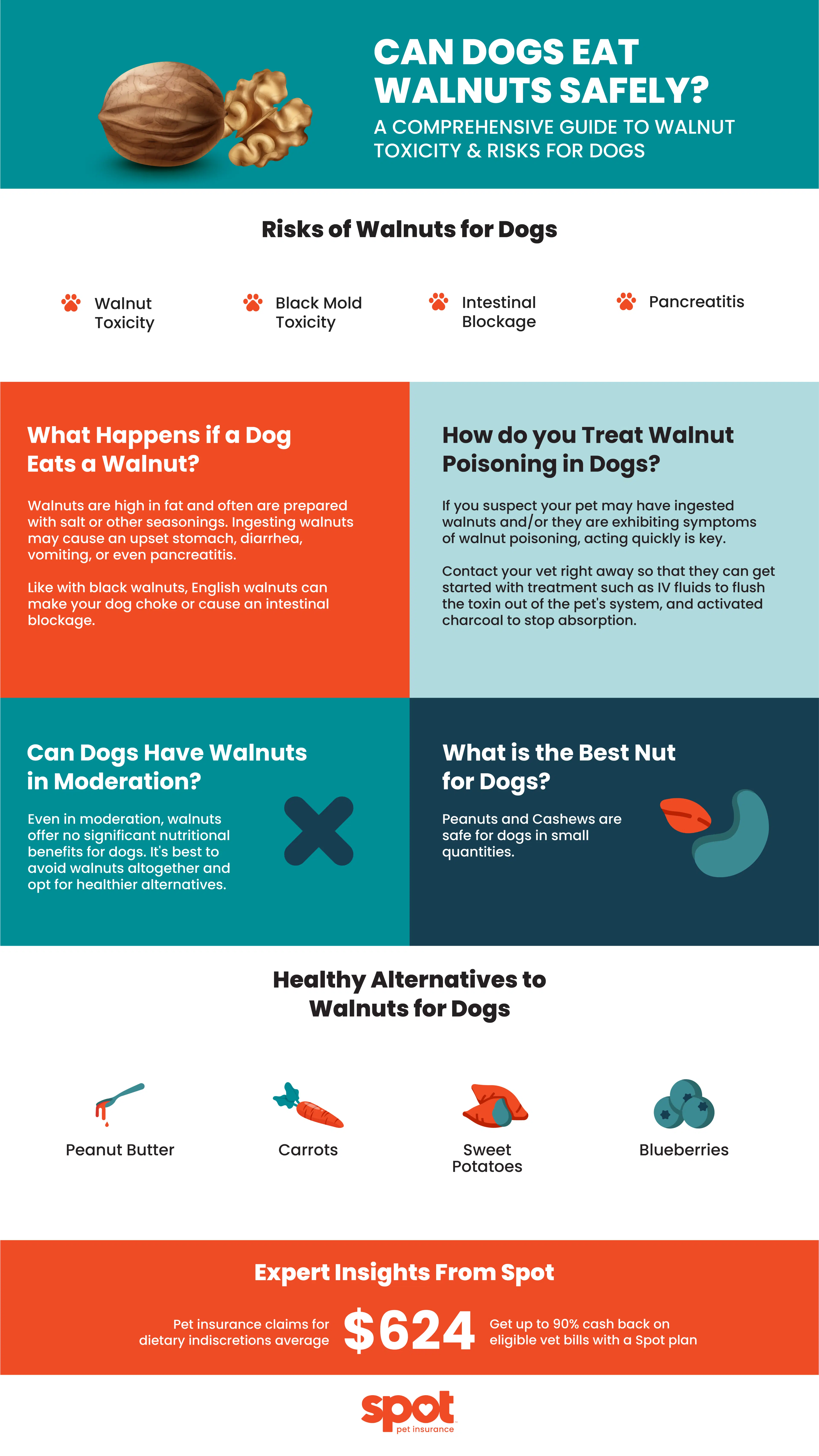 Dr. Kate Boatright. "Can dogs eat walnuts? Here’s everything you need to know." Pawlicy Advisor, n.d., https://www.pawlicy.com/blog/can-dogs-eat-walnuts/.