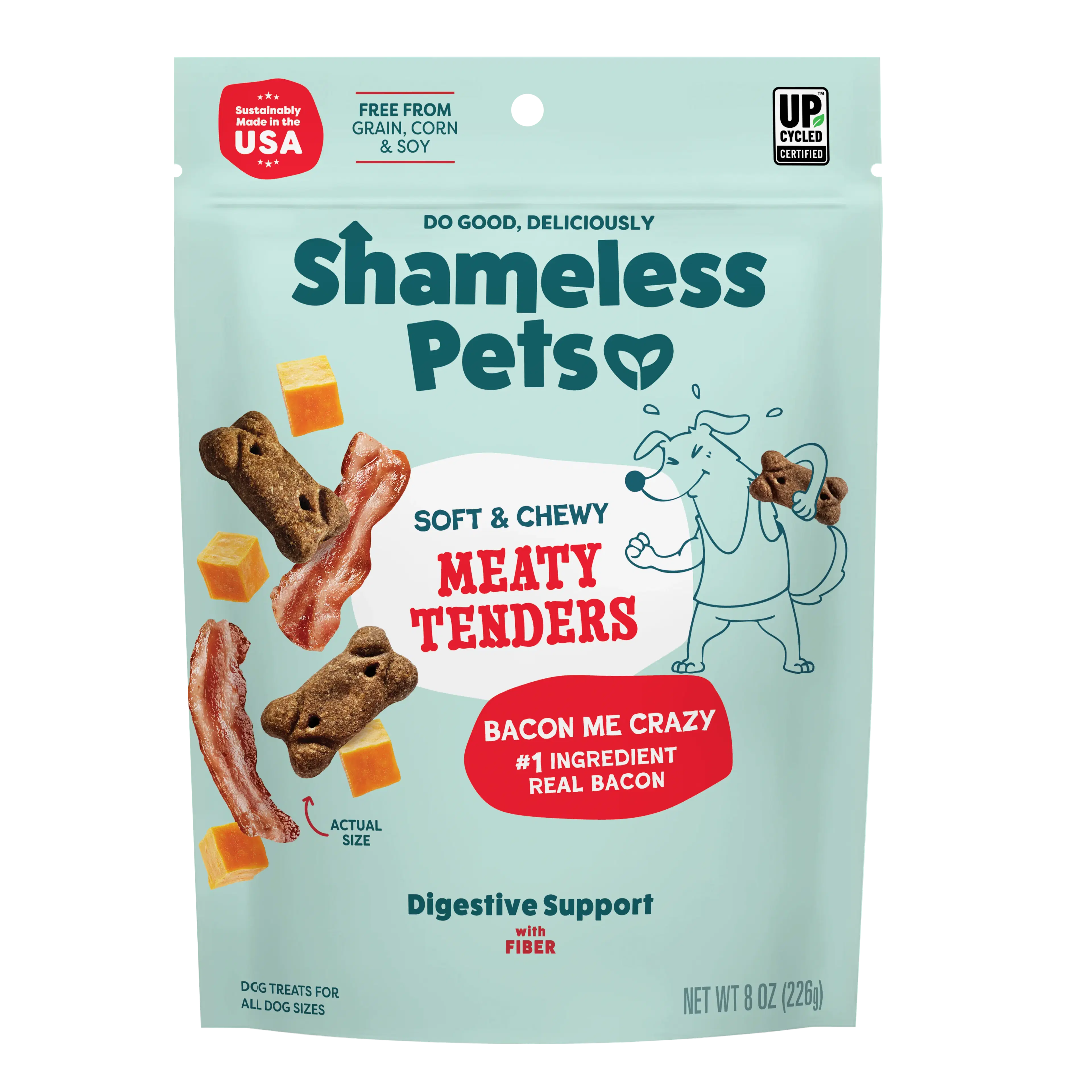 Shameless Pets Meaty Tenders Bacon Me Crazy are a great option for pet parents who want a soft, tasty treat with added digestive support. Made with fiber, these treats can help support gut health while still feeling like a fun reward.