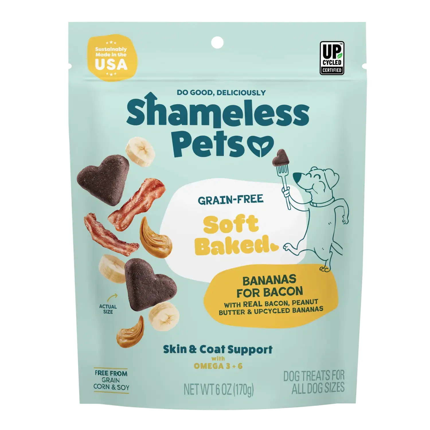 Shameless Pets Bananas for Bacon Soft Baked treats are made with omega-3 and 6 to help support skin and coat wellness. They’re an easy way to add extra support to your dog’s routine without making major changes.
