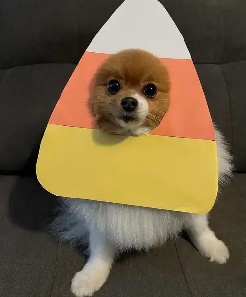 4. The Forbidden Fruit: We all have our guilty pleasures, and our pets are no exception. Maybe your dog dreams of devouring an entire bag of candy corn, or your cat longs to sample a forbidden fruit. Dress them up as their "forbidden fruit" for a humorous take on Halloween.