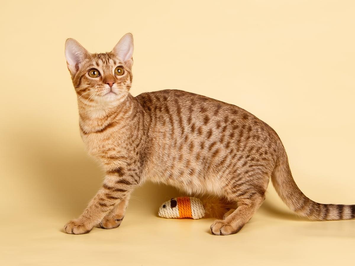 The Ocicat is a medium-sized, well-spotted agouti cat of moderate type. A breed of this type has the appearance of an athletic animal, well-muscled and solid, graceful and lithe, yet full of body and chest. Spotted cats are known for their powerful,...