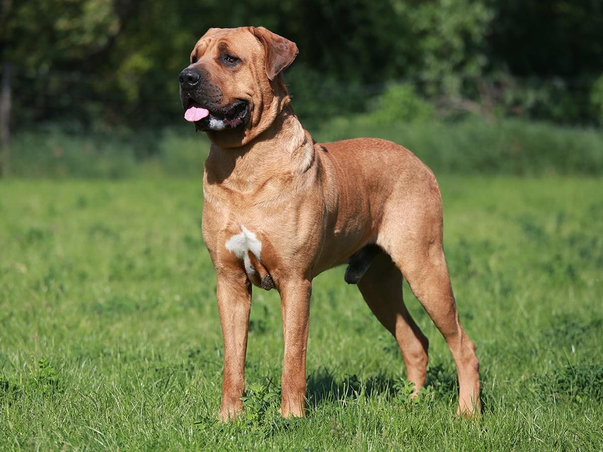 The Tosa Inu is a Japanese mastiff type dog breed with a muscular body and dark brown eyes. They have small and thin ears which are flopped on either side of the face. Tosa Inu is one of the rare dog breeds found in Japan.